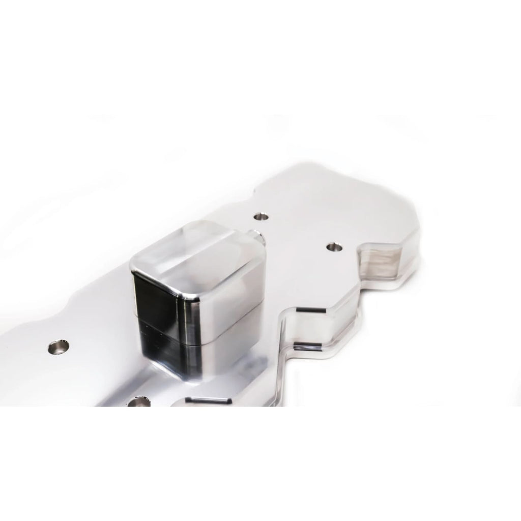 D&J Precision's billet valve cover is machined from high quality aluminum featuring a built in baffled breather system that helps prevent the engine oil from escaping under high boost/high rpm conditions. This eliminates the need for a catch can in most cases although this valve cover can still be used in conjunction with one.