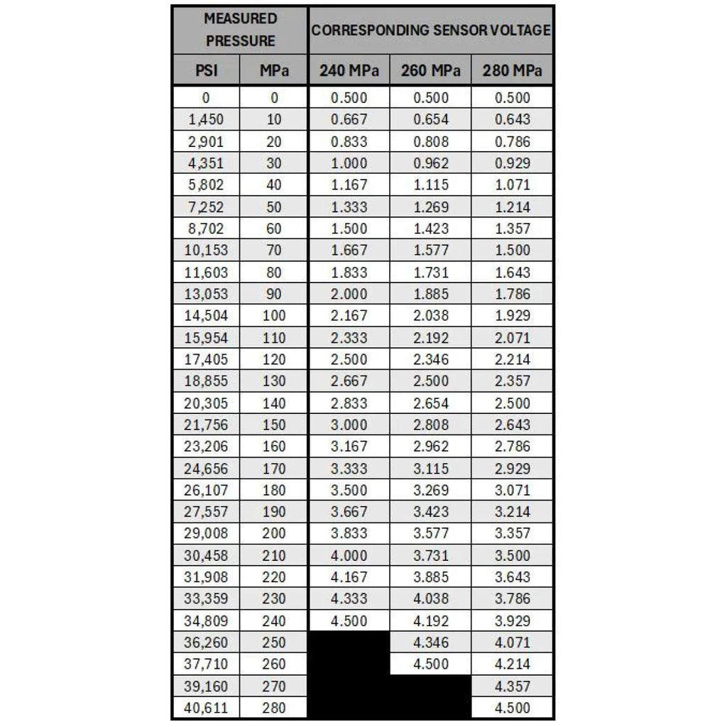 - Reads 240MPa (34,800PSI)