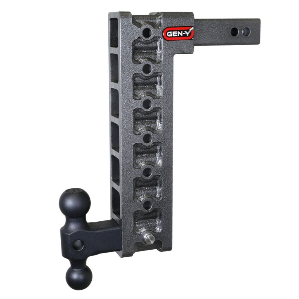 GEN-Y's Mega-Duty Adjustable Drop Hitches start at 10,000 LB towing capacity and go up to 32,000 LB towing capacity. There are multiple drop options as well depending on your trailer towing needs.