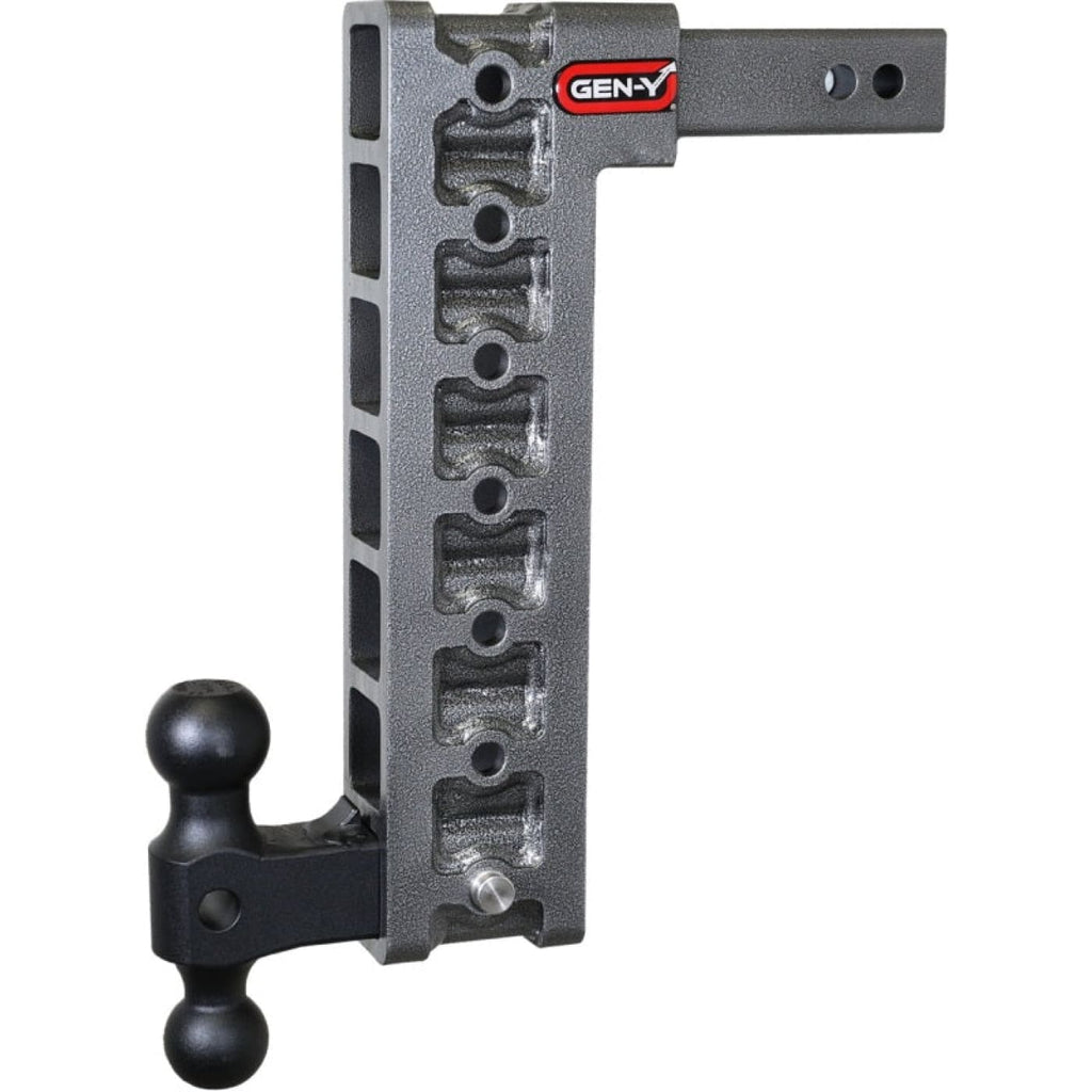 GEN-Y's Mega-Duty Adjustable Drop Hitches start at 10,000 LB towing capacity and go up to 32,000 LB towing capacity. There are multiple drop options as well depending on your trailer towing needs.