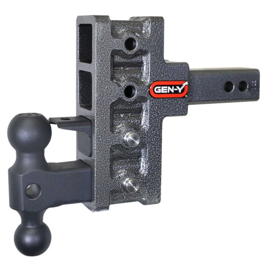 GEN-Y's Mega-Duty Adjustable Drop Hitches start at 10,000 LB towing capacity and go up to 32,000 LB towing capacity. There are multiple drop options as well depending on your trailer towing needs.