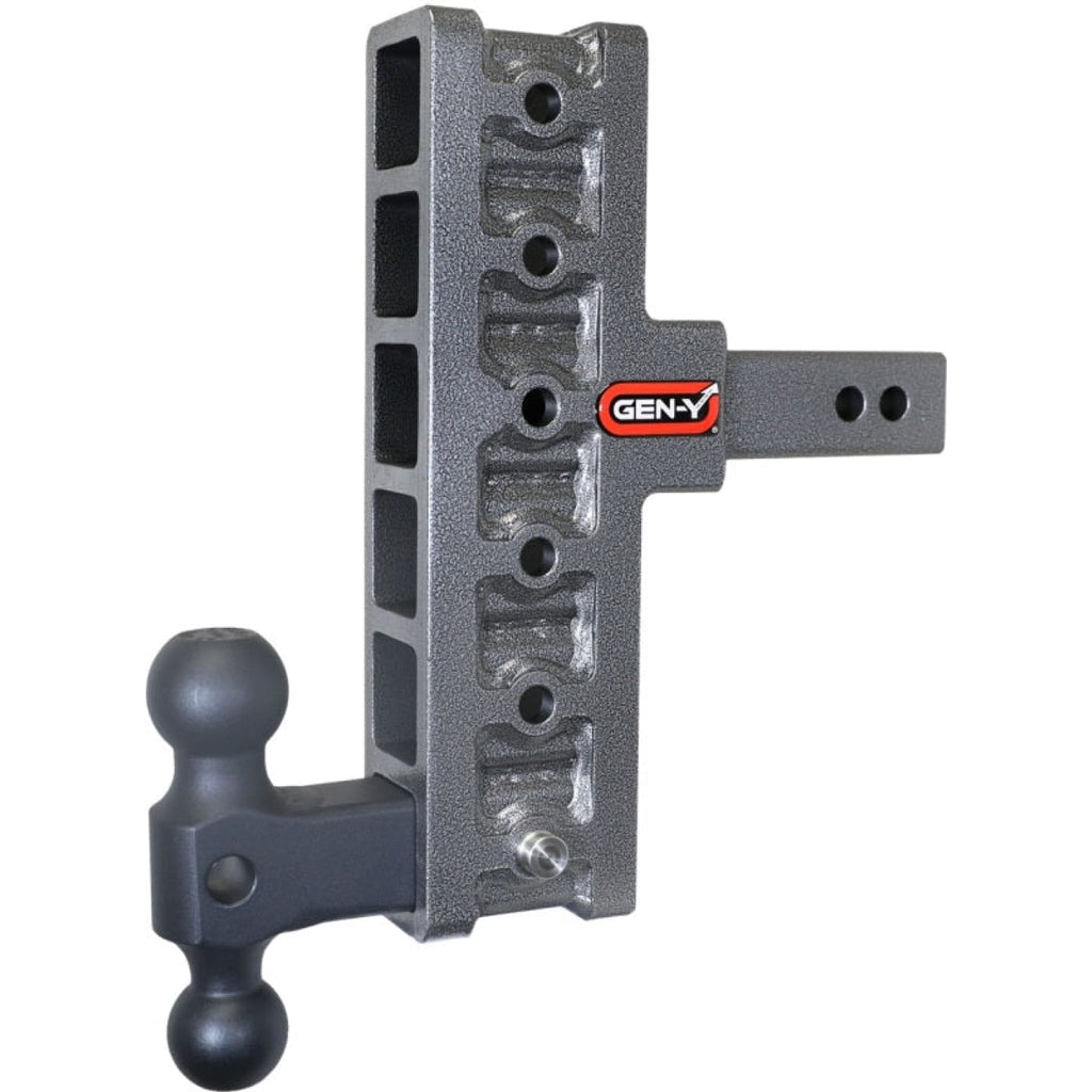 GEN-Y's Mega-Duty Adjustable Drop Hitches start at 10,000 LB towing capacity and go up to 32,000 LB towing capacity. There are multiple drop options as well depending on your trailer towing needs.