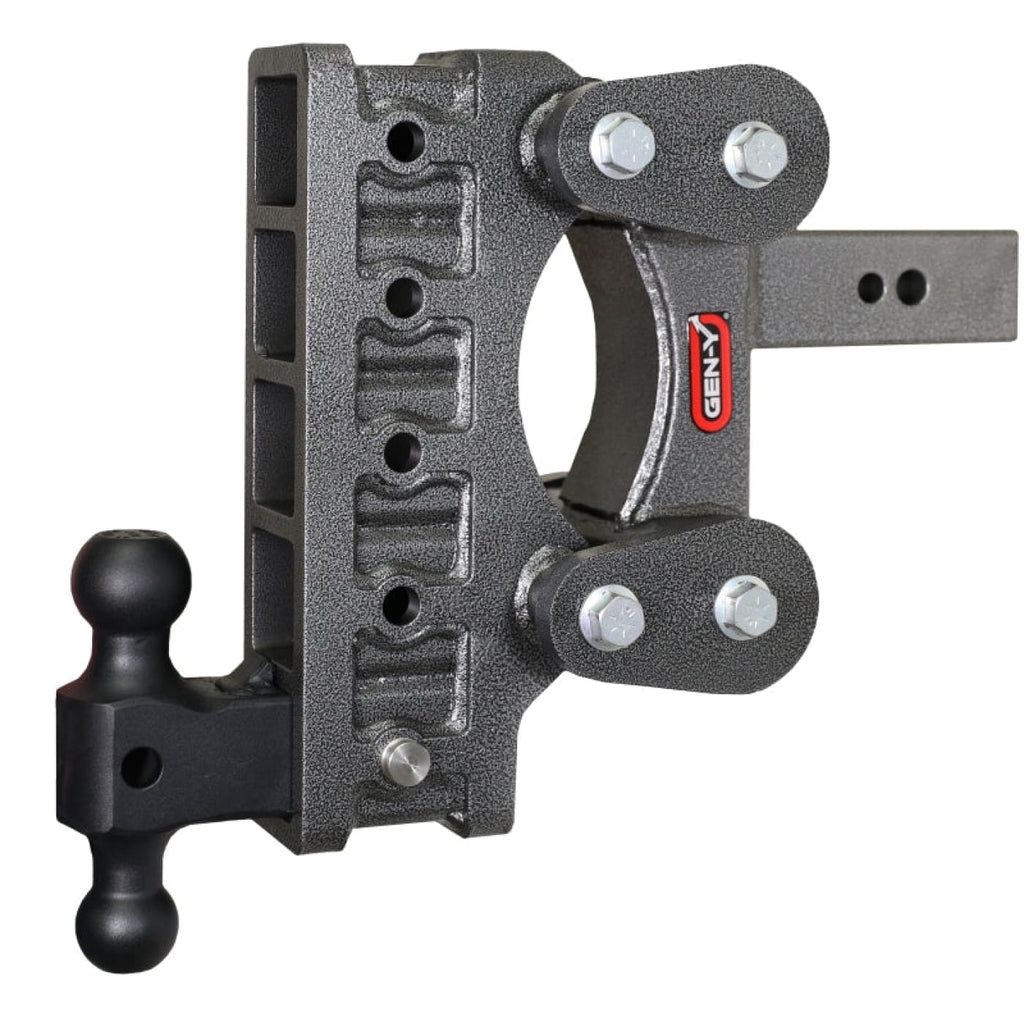 GEN-Y's Boss Adjustable Drop Hitches start at 10,000 LB towing capacity and go up to 32,000 LB towing capacity. The Torsion-Flex Drop Hitch is the best hitch for ultimate control and safety while towing any bumper style trailer on the market including pintle style couplings.