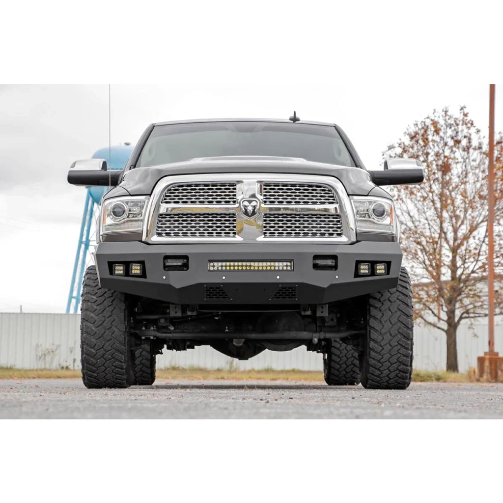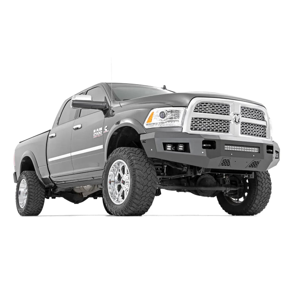 Give the front of your Ram an aggressive, new appearance with Rough Country’s Front LED Bumper. This easy-to-install upgrade gives your truck an improved look and better protection that offer impressive off-road illumination! Rough Country’s Front LED Bumper is made of a durable, all-steel construction. Each bumper features four Rough Country 2in LED Cubes and a 20in LED Light Bar that offer over 15,000 lumens of combined lighting power. Each bumper also includes sensor relocators to allow you to retain the vehicle’s anti-collision system. This incredible front bumper system is powder coated flat black and is ready to withstand the elements for a long lifespan of good looks. Rough Country’s Front LED Bumper is also easy to install with no cutting or drilling required.