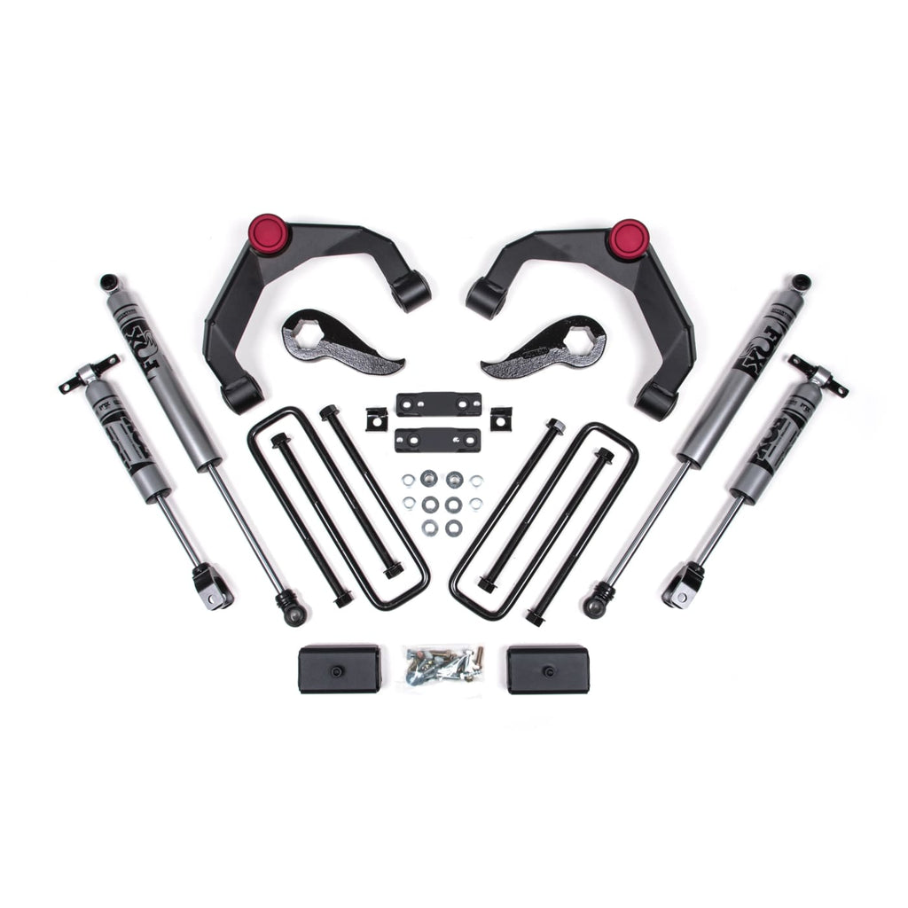 Zone Offroad includes a small differential relocation kit (4WD models only) to correct CV axle operating angles without effecting ground clearance. The sway bar operating angle is corrected with the use of a pair of relocation brackets allowing for full droop of the suspension and proper clearance. In the rear a 2? block and u-bolt kit is used to create a level to slightly tail high stance. Rounding out the kit are a set of Nitro gas or FOX adventure series IFP gas shocks at all 4 corners for a smooth ride and impressive performance across any terrain.