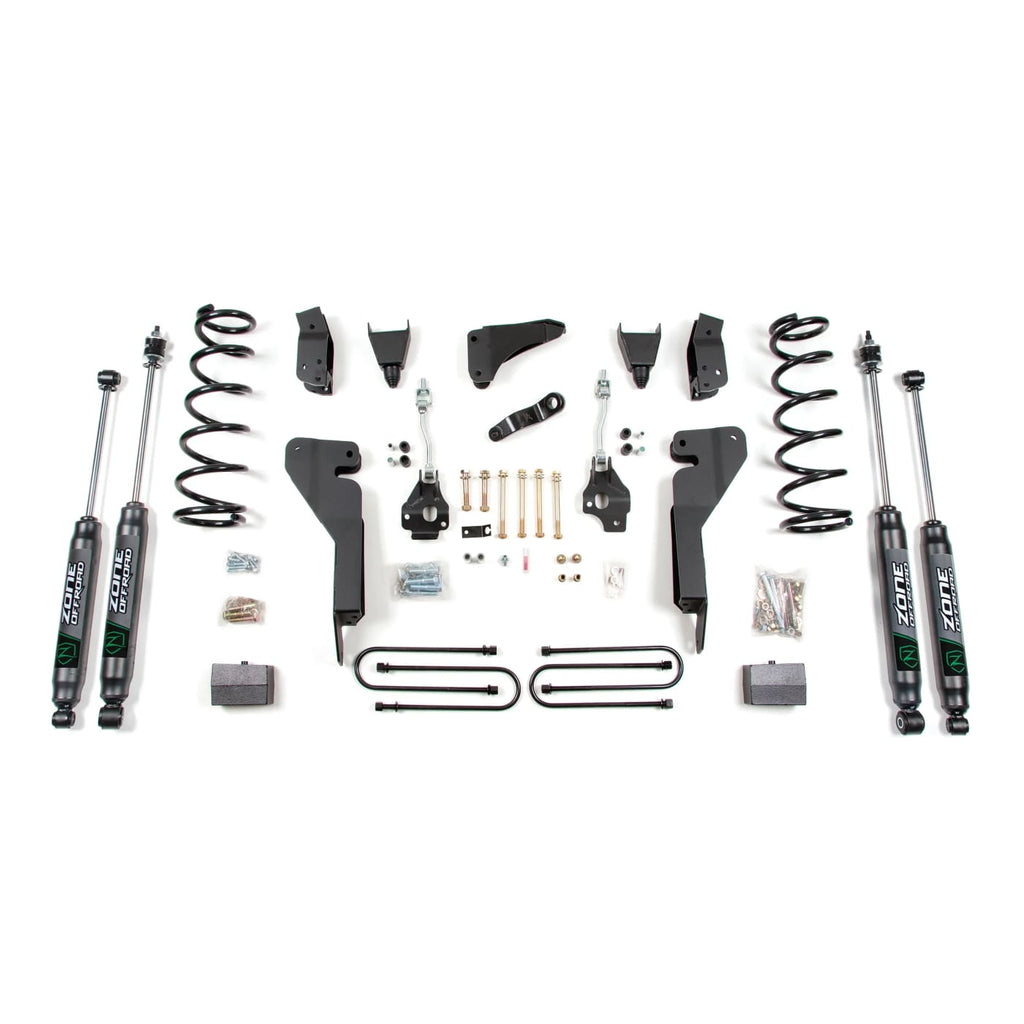 The Zone Offroad 6" Suspension Lift comes with everything you need increase your ride quality while providing enough clearance to fit up to a 37" tire. This lift kit features high quality steel components with a durable black powder coat finish and your choice of the standard Zone Nitro or upgraded Fox 2.0 Adventure Series shocks.